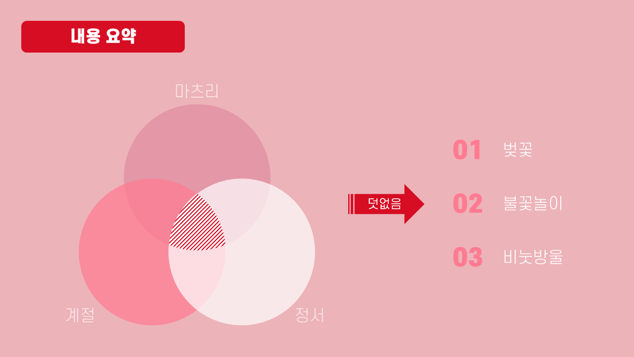 한순간에 화려하게 꽃처럼 피어나며 사람들에게 즐거움을 선사하는 불꽃놀이도 끝이 있듯 연인 관계도 사랑이 식기 전까지는 화려하고 즐겁지만 헤어지고 나면 끝이잖아요. 가사 속에서 불꽃놀이는 지나간 여름의 추억이기도 하지만 화자에게 사랑이 별 것이 아니라는 사실을 깨닫게 해 주는 대상으로 표현되었습니다.